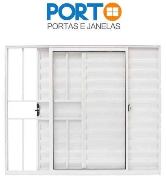 Janela Veneziana 3 folhas com uma fixa com grade. Veja as opções de medidas disponíveis |