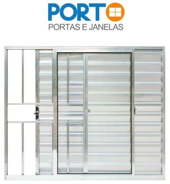 Janela Veneziana 3 folhas com uma fixa com grade. Veja as opções de medidas disponíveis |