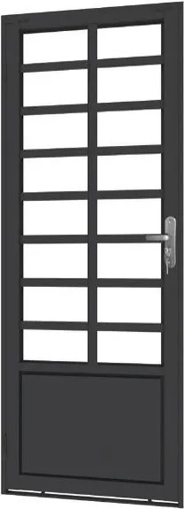 | Descrição | Porta de Abrir (giro) lambril com travessas alumínio preto. Veja as opções de medidas e lados disponíveis. |